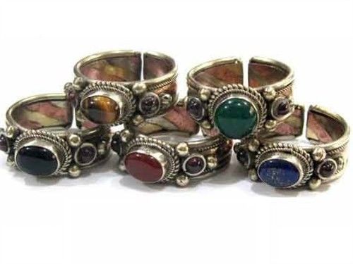 Solid Adjustable Tibetan 3-color Copper Tiger Eye Garnet 3 Gemstone Dotted Ring