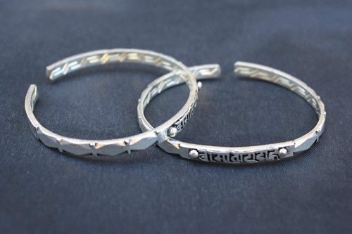 Two Solid Tibetan Bodhi Weaving OM Mani Padme Hum Diamond Shaped Cuff Bracelet