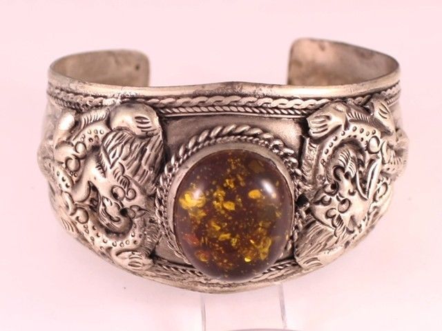 elegant and popular Tibetan gemstone dragon cuff bracelet, for protection in all directions