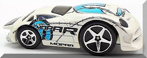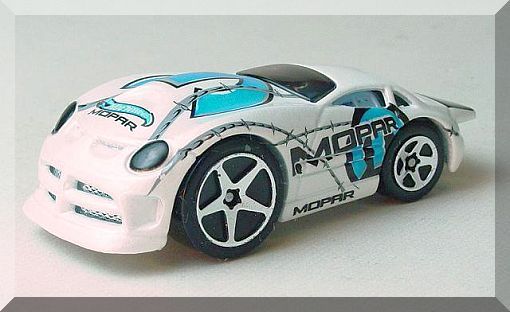 Description: White, w/Light Blue interior, Smoked windshield, Blue, Black, Gray tampos, 'Mopar' Mopar emblem on sides hood, 'Hot Wheels' logo on hood, Chrome Malaysia Base, w/Chr5SP's. 011517-112919P-D05