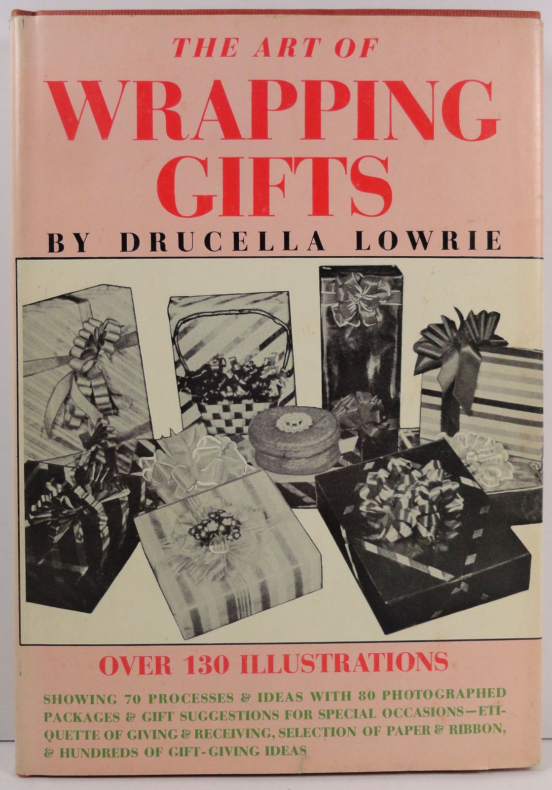 Showing 70 processes and ideas with 80 photographed packages and gift suggestions for special occasions, etiquette of giving and receiving, selection of paper and ribbon and hundreds of gift giving ideas. (#00002487)