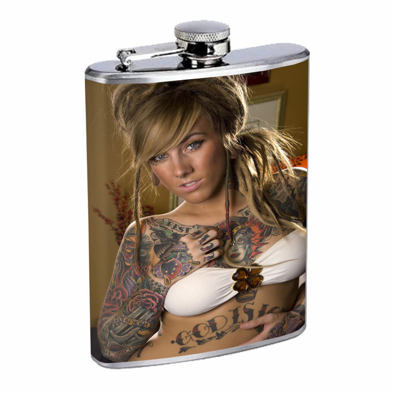 Tattoo Pin Up Girls D24 Flask 8oz Stainless Steel Hip Drinking Whiskey Brandi