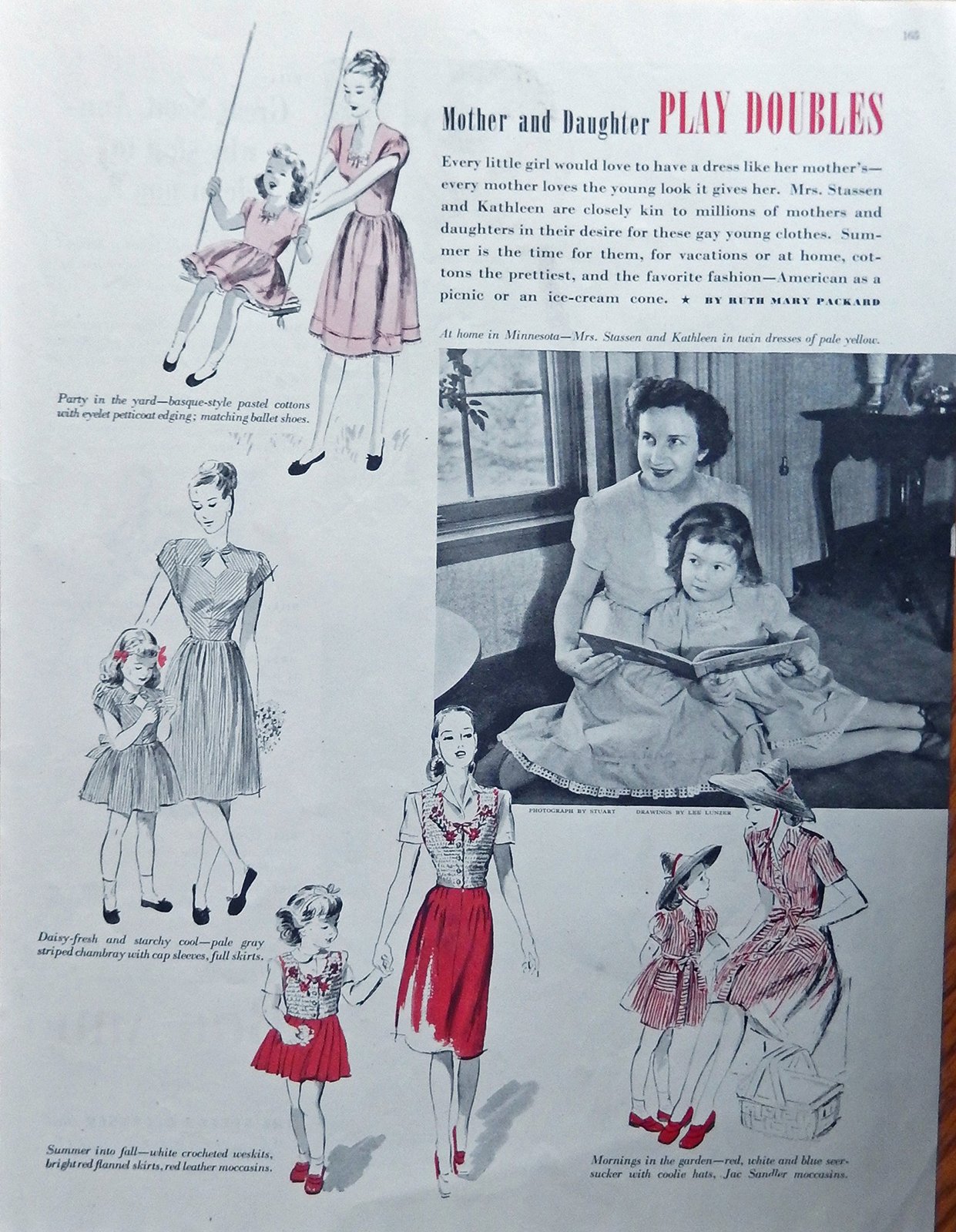 Fashion Page, Rare 40's print ad. Color Illustration. (mother and daughter) orig