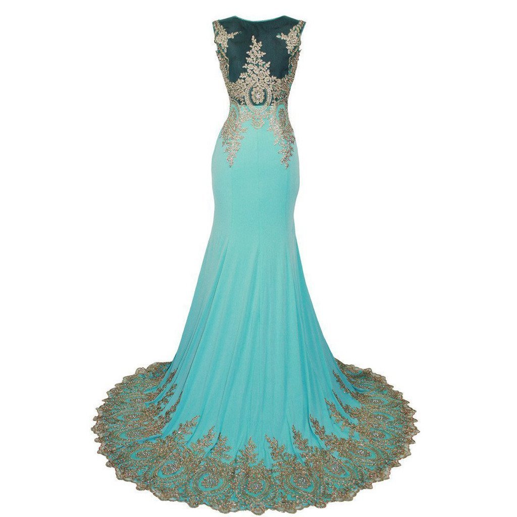 See through tulle sheer top front and back with gold lace and shiny rhinestones gems beaded sheer bateau neck cap sleeves women formal gowns,it can also be used as prom dresses, evening dresses, holiday dresses, party dresses, pageant dresses, bridesmaid dresses, wedding party dresses, wedding guest dresses etc.