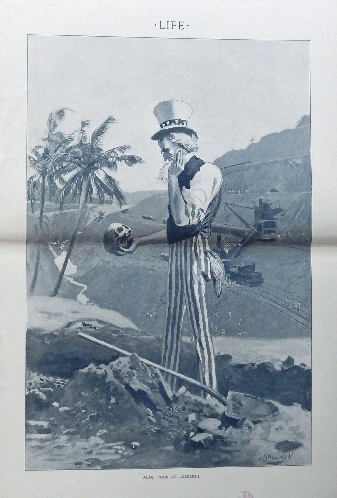 Alas, Poor De Lesseps! by BROUGHTON 1903 B&W Illustration, (building Panama Cana