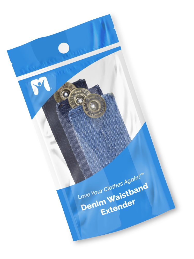 Why live with a pinched waistline or be forced to buy new jeans? Your simple solutions are here! The Denim Waistband Extenders are perfect to button on any jeans with a button. In a few seconds, you will feel more comfortable.