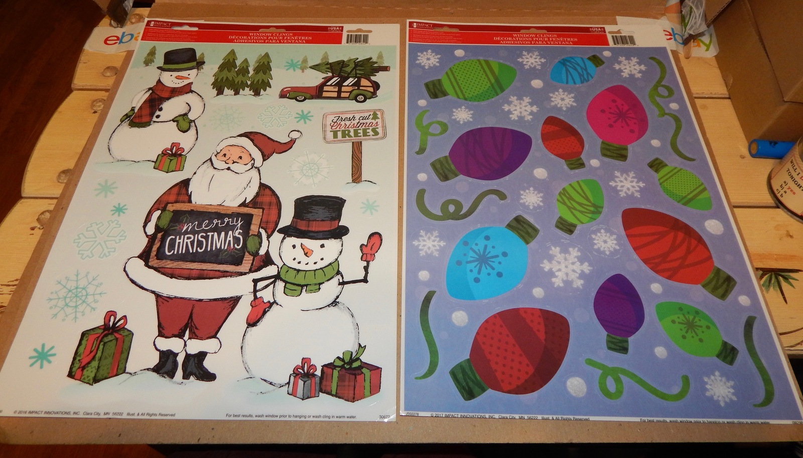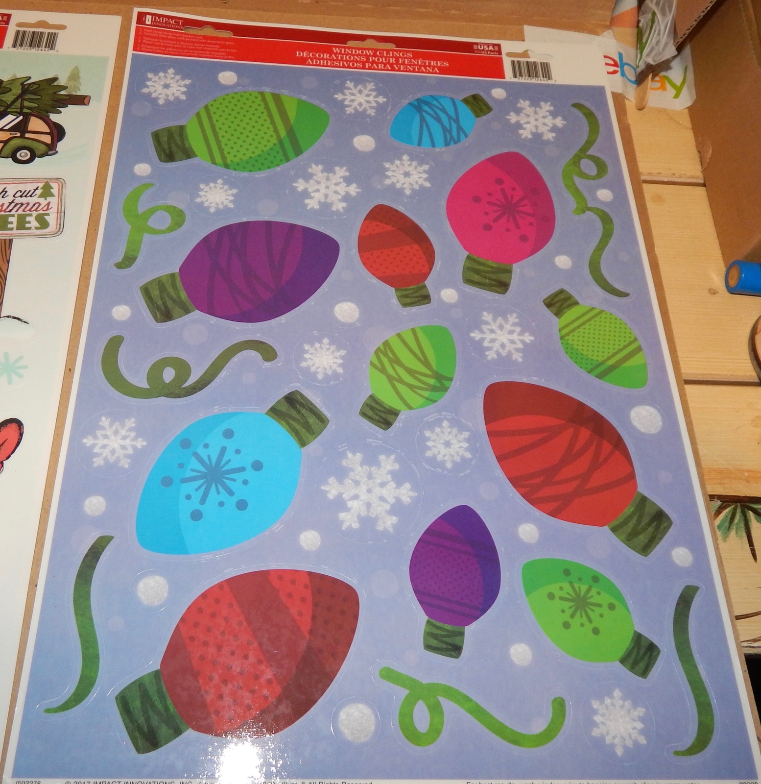 Christmas Window Clings 15 1/2" x11 1/2" 2ea USA Impact Innovations Bulbs 149B.