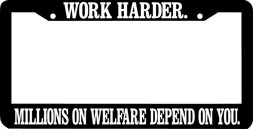 WORK HARDER MILLIONS ON WELFARE DEPEND ON YOU License Plate Frame