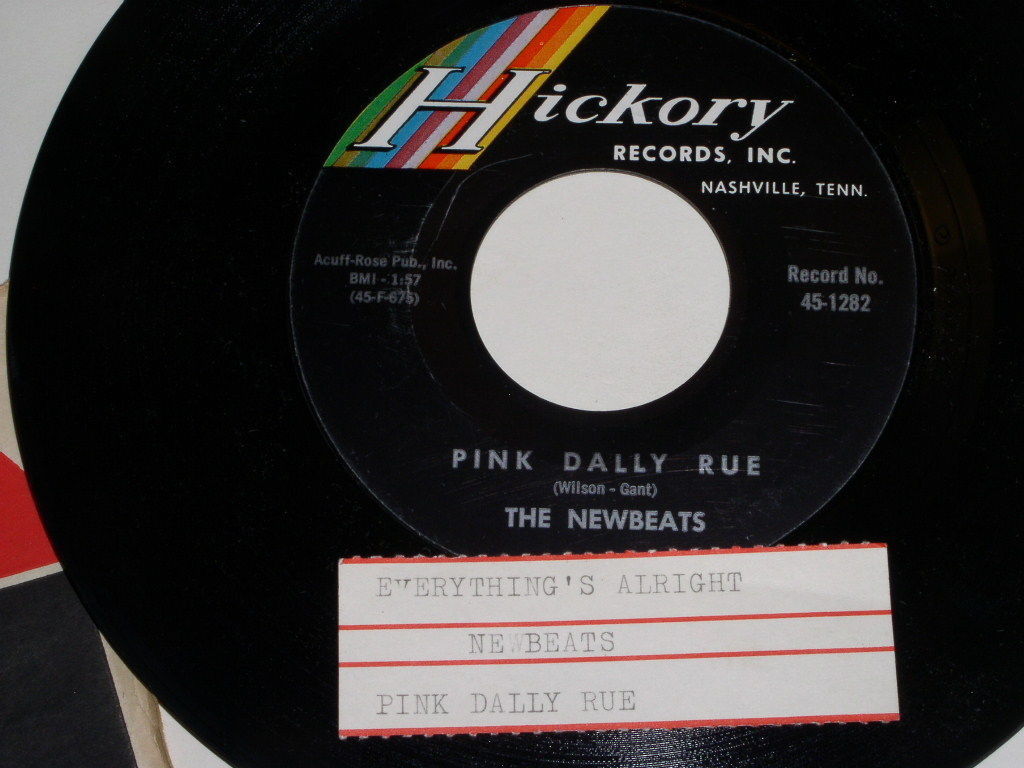 This is a vintage 45 rpm phonograph record by The Newbeats, entitled, "Pink Dally Rue". Flipside: "Everything's Alright". Record label: Hickory 45-1282. Comes with the original juke box strip, making this all the nicer.