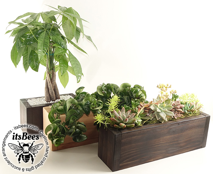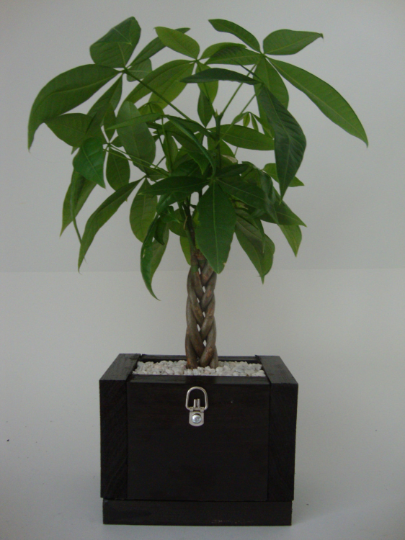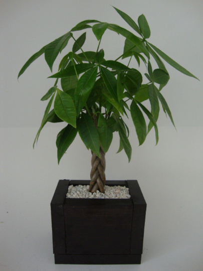 Braided Money Tree - Pachira - Handmade Wood Planter - Wall Mount or Tabletop