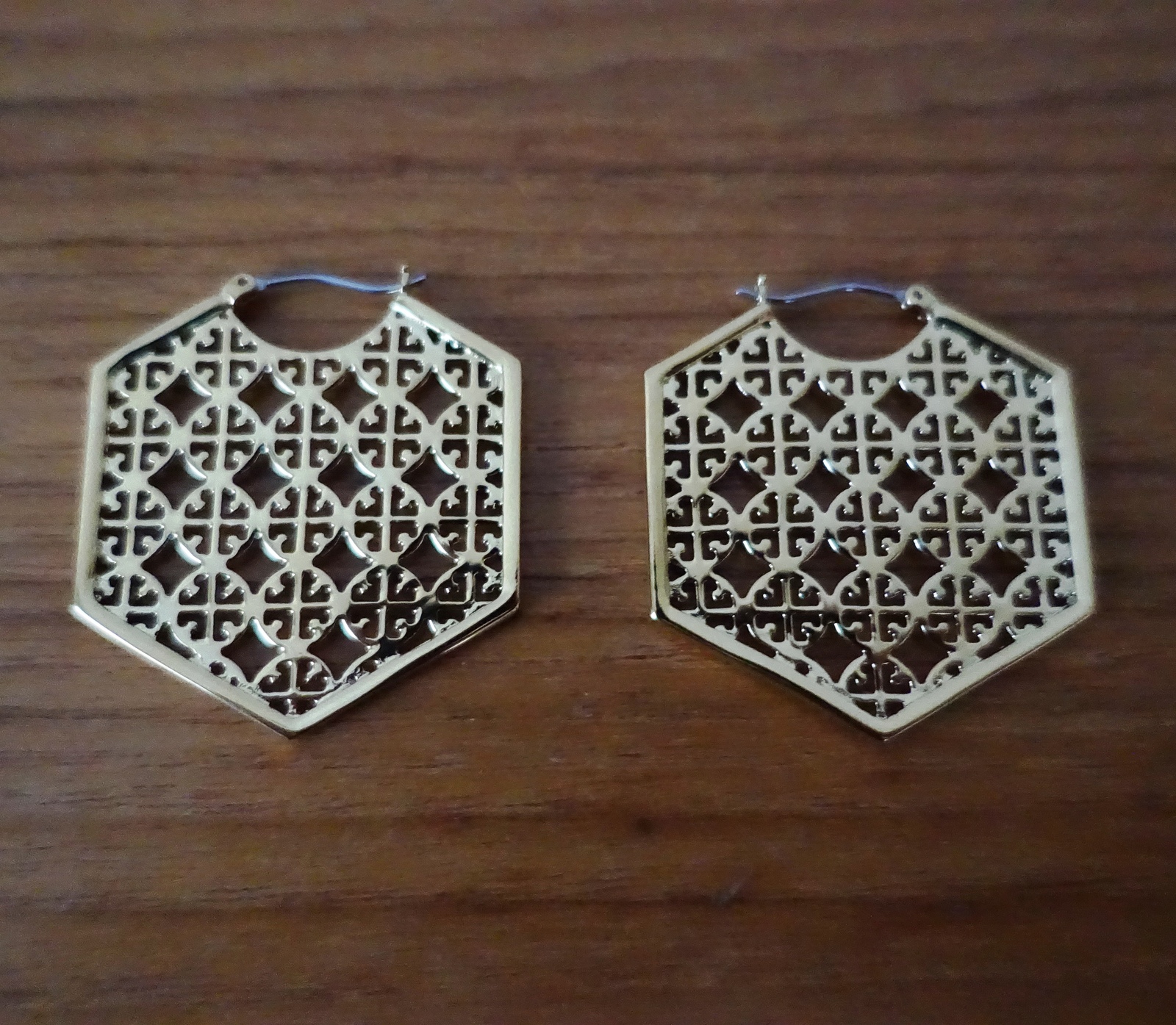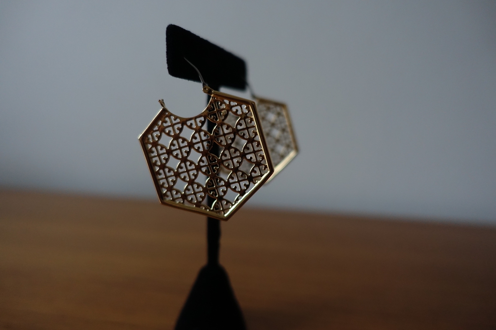 TORY BURCH PERFORATED LOGO HOOP EARRINGS GOLD COLOR. NEW