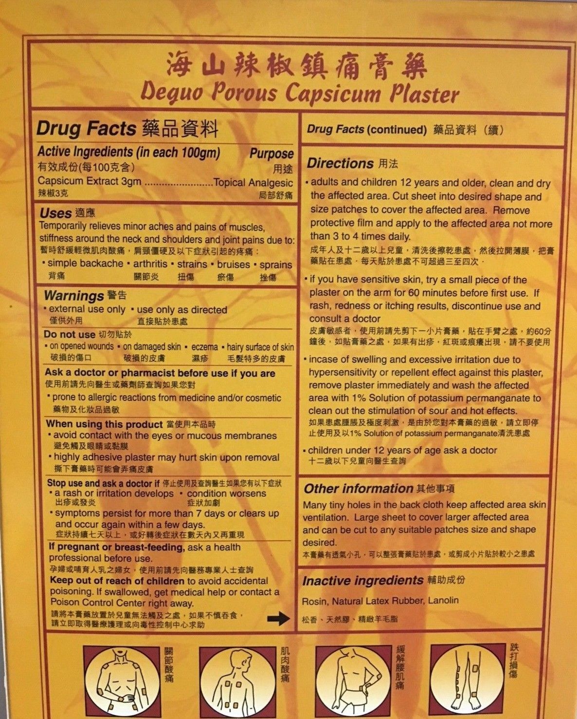 24 Sheet Plaster Deguo Porous Capsicum Plaster 11X18 CM - External Use Only
