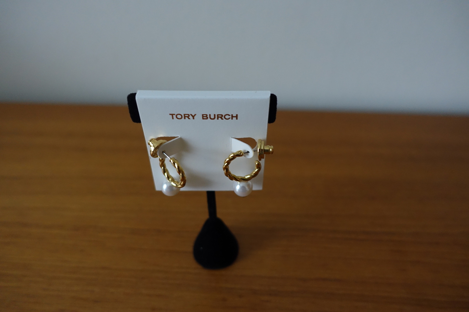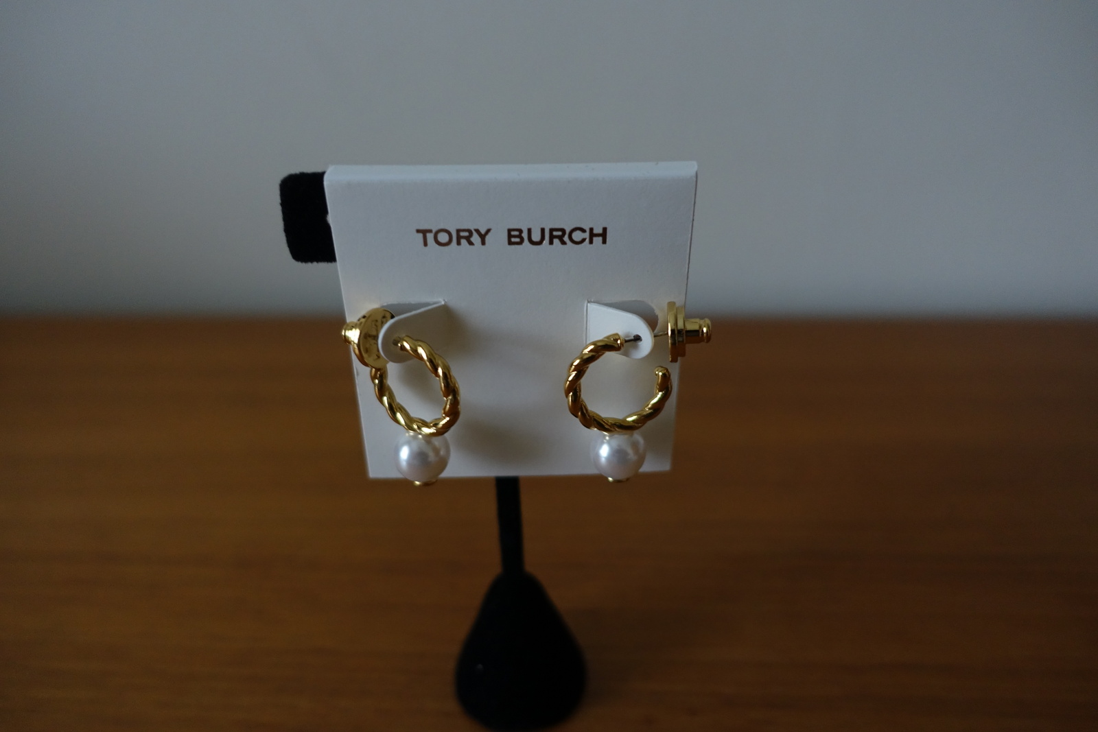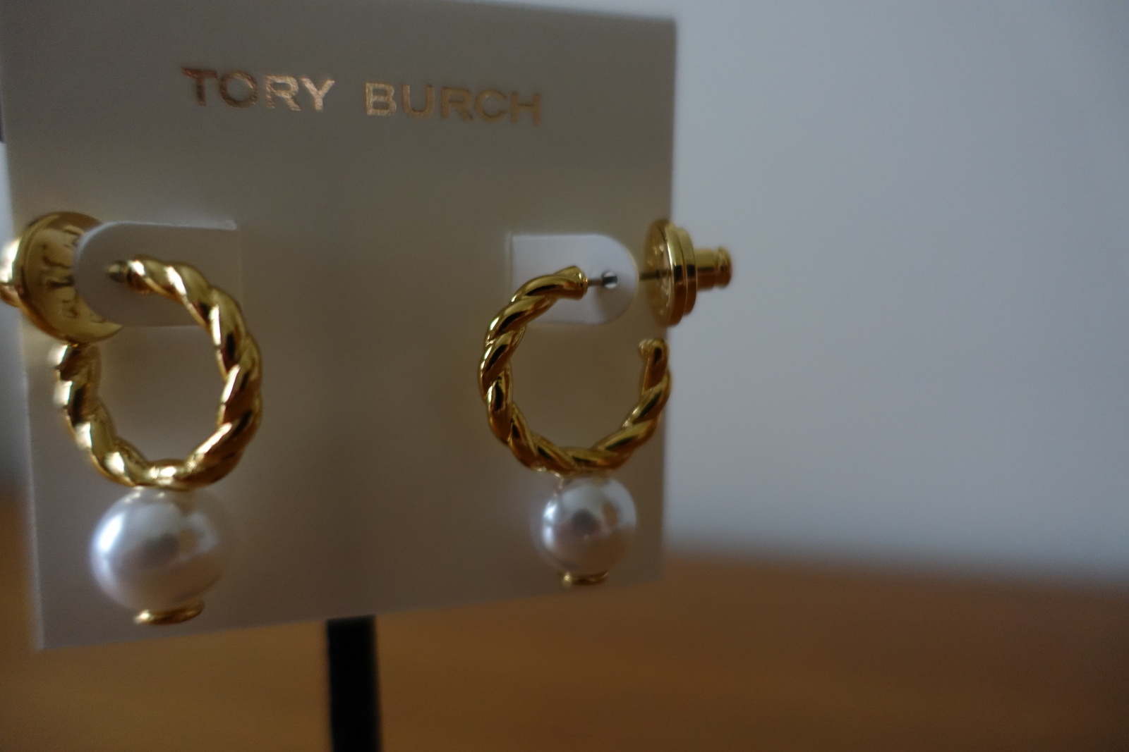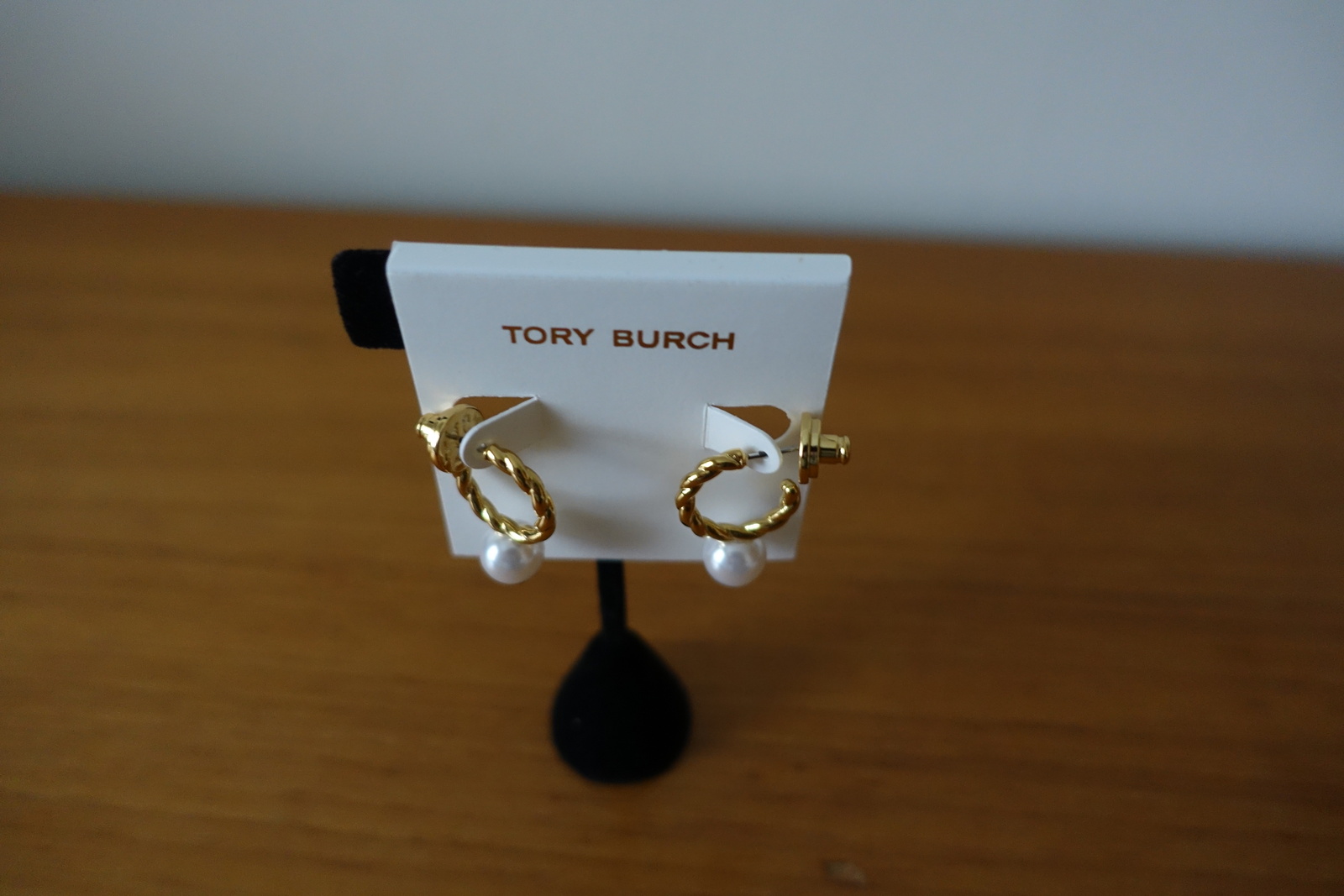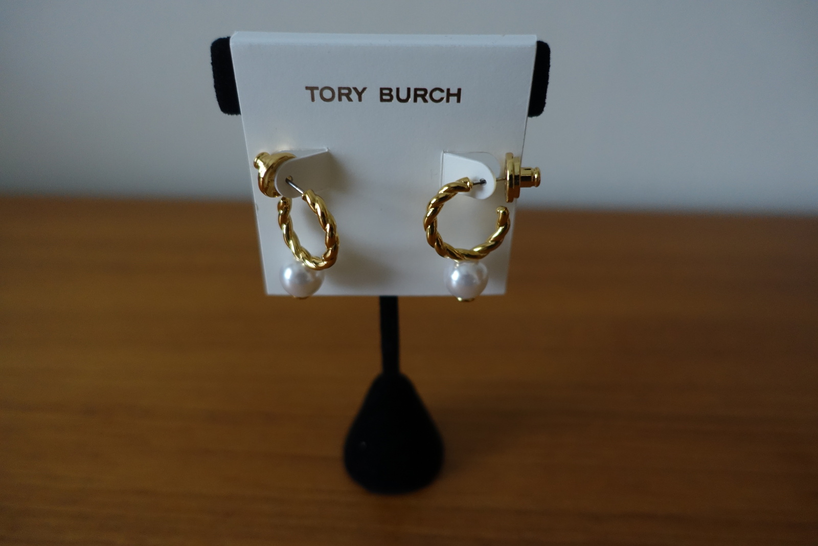 TORY BURCH GOLD ROPE LOGO BEAD HOOP EARRINGS. NEW