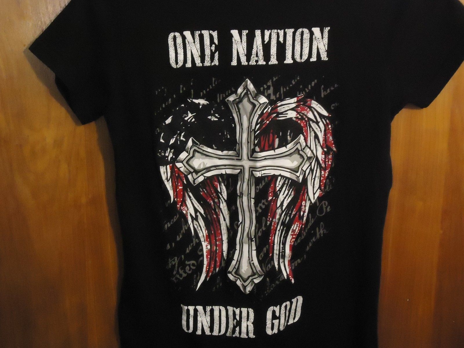 Womens / Girls District M Black Multi " ONE NATION UNDER GOD " Short Sleeve Top