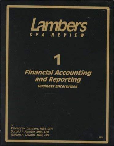 Product description: CPA Exam Financial Accounting and Volume one of the Lambers CPA Review textbook series covers the Financial Accounting and Reporting section of the CPA exam. Topics covered include Partnerships, Consolidations, Bonds, Accounting for Debt, Earnings Per Share, Inventories, Other Assets, Liabilities and Disclosures and much more. There are 14 chapters in all containing review material on topics relating to the Financial Accounting and Reporting section of the CPA exam. Accompanying the review material in each chapter are examples followed by past CPA exam questions with solutions. This book contains over 1,000 past CPA exam questions with solutions.
