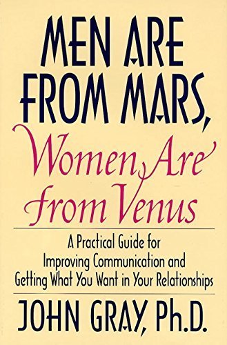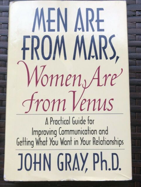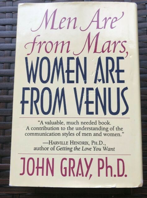 Men Are from Mars, Women Are from Venus (1992[1]) is a book written by American author and relationship counselor John Gray, after he had earned degrees in meditation and taken a correspondence course in psychology. The book states that most common relationship problems between men and women are a result of fundamental psychological differences between the sexes, which the author exemplifies by means of its eponymousmetaphor: that men and women are from distinct planets—men from Mars and women from Venus—and that each sex is acclimated to its own planet's society and customs, but not to those of the other. One example is men's complaint that if they offer solutions to problems that women bring up in conversation, the women are not necessarily interested in solving those problems, but mainly want to talk about them. The book asserts each sex can be understood in terms of distinct ways they respond to stress and stressful situations.