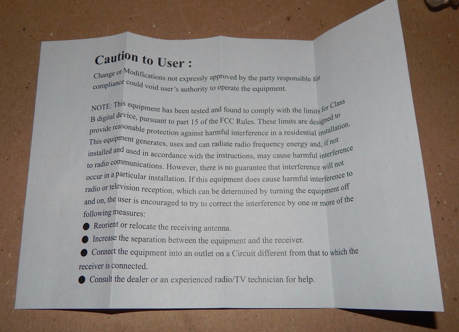 Item description