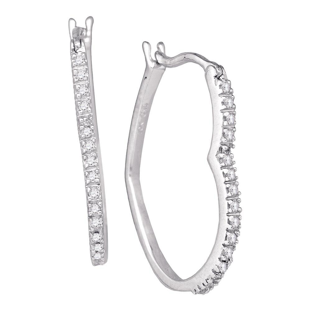 10kt White Gold Womens Round Diamond Heart Hoop Earrings 1/10 Cttw