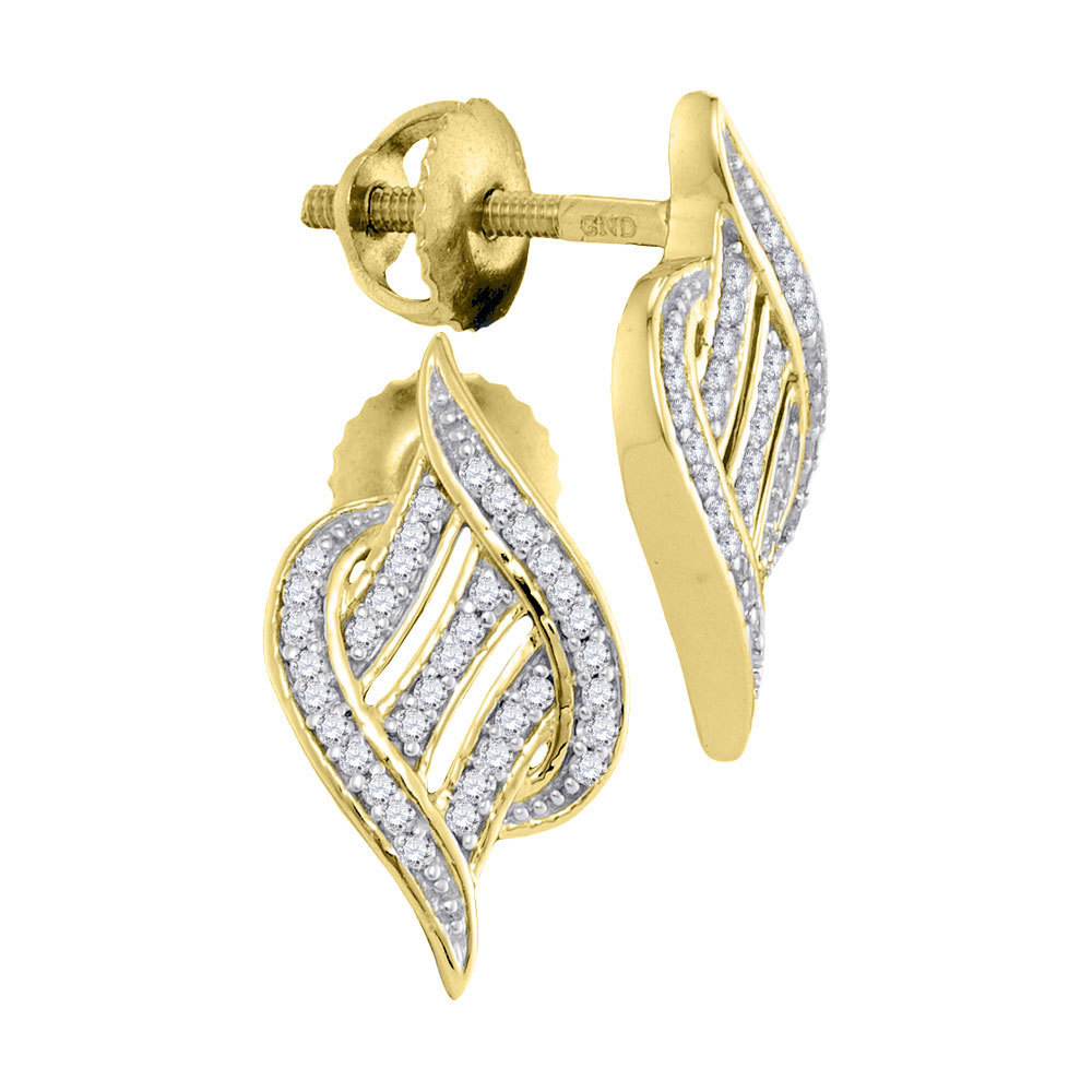 10kt Yellow Gold Womens Round Diamond Striped Cascading Stud Earrings 1/6 Cttw
