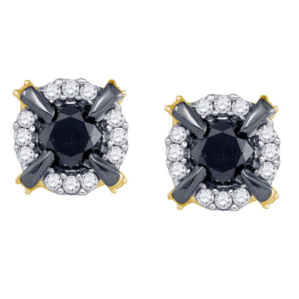 10kt Yellow Gold Womens Round Black Color Enhanced Diamond Stud Earrings 1.00 Cttw