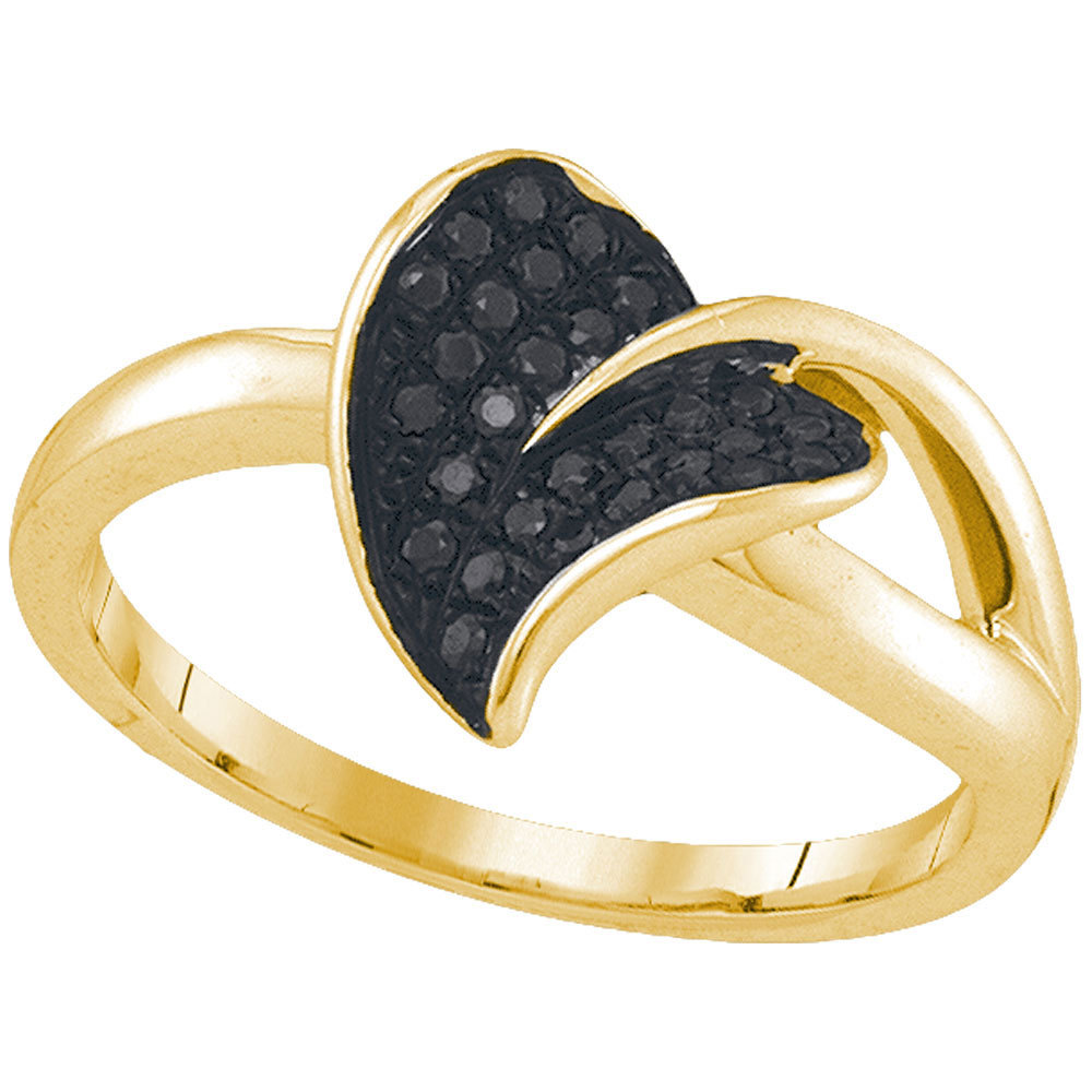 10kt Yellow Gold Round Black Color Enhanced Diamond Leaf Petal Ring 1/6 Cttw
