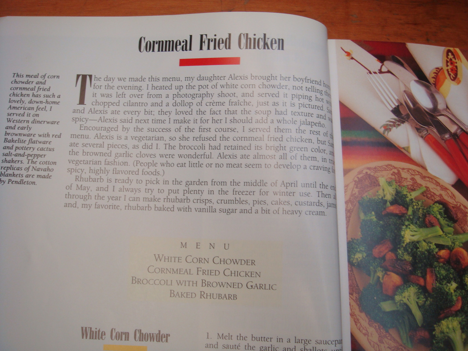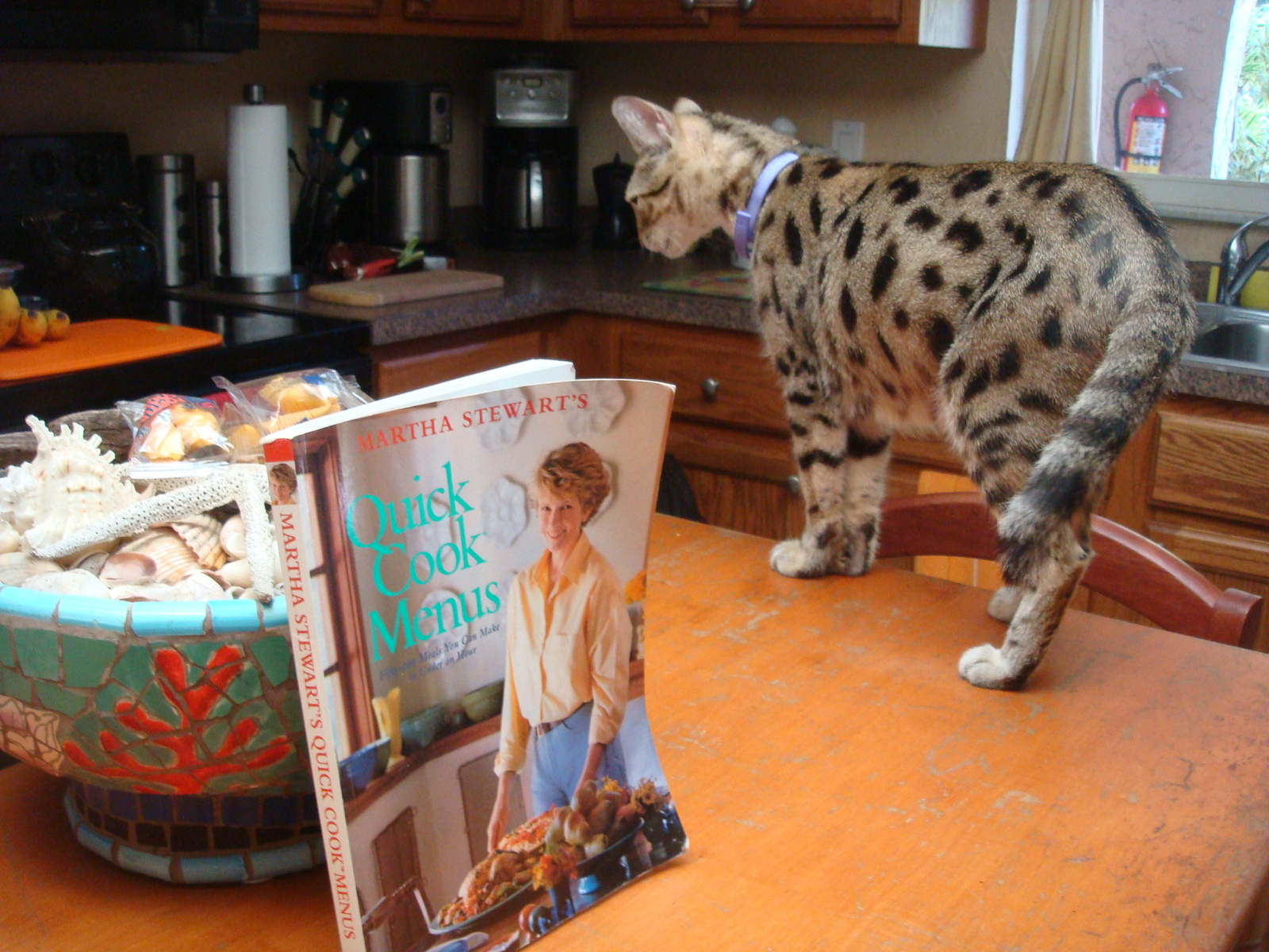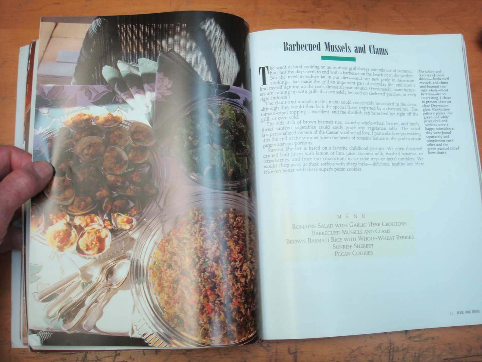 " I found it a challenge to invent menus that allowed us to continue eating 3 meals a day but to consume fewer calories. There is a noticable decrease in the use of cream and butter, more salads, less bread, and more shellfish and fish. There is certainly a greater emphasis on pasta, good soup recipes and increased use of grains. I do more grilling over gas and wood fires and very little FRYING! said Martha!