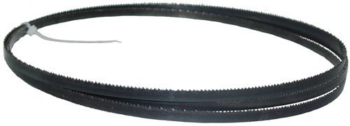 Carbon tool steel bandsaw blades are designed to work with a woodcutting saw to cut all types of woods 800-3,500 fpm; especially ideal for soft woods, i.e. pine, polar, fir and spruce. If used with a good release agent, it can cut plastics at a range of 200-800 fpm, or non-ferrous metal ( i.e. aluminum, copper and brass ) at a range of 200-1,000 fpm. However, to cut ferrous metals or mild steel ( don't cut hard steel ), you must only use a metal-cutting saw at a range of 40-200 fpm. Having liquid coolant running along the back of the blade yields the best results is highly recommended. The following is a guideline for choosing an adequate tooth pattern to cut metal materials, Use * 24 raker to cut 1/16" to 1/4" thick material, * 18 raker to cut 1/8" to 3/8" thick material,* 14 raker to cut 3/16" to 7/16" thick material,* 10 raker to cut 1/4" to 5/8" thick material,* 6 Hook to cut 3/8" to 2" thick material,* 4 Hook to cut 3/4" to 4-1/2" thick material,* 3 Hook to cut 1" to 6" thick material,* 2 Hook to cut 2" to 12" thick material. All Magnate bandsaw blades are welded and fabricated in the USA. The coils/material of the bandsaw bladesare USA brands. The picturedepicts a generalbandsawblade and thus may lookdifferent fromeach particular item.Note: theimage shows only one single blade. For packaging purposes, this blade is folded into a coiled position which is similar to a spring and may pop open when uncoiled. Wear leather gloves and eye/body protection while using extreme care when uncoiling the blade. Failure to exercise the proper care could result in serious bodily injury. See your bandsaw owner's manual for further safety instructions. Please refer to your owner's/operation manual tomake sure the blade's length, width andthickness can fit your bandsaw machine. The following bandsaw models use 67 inch ( 5 ft. 7 inch, 5' 7" ) long bandsaw blades. Ryobi BS1001SV;Tradesman 8168;