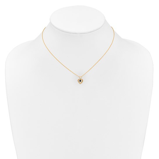 This children's birthstone necklace is crafted from polished 14K Yellow Gold and features a genuine 3mm round cut sapphire stone in the center of a polished round heart pendant.