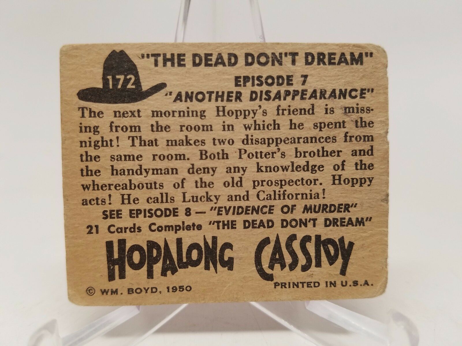 1950 Hopalong Cassidy #172 Trading Card "The Dead Don't Dream"