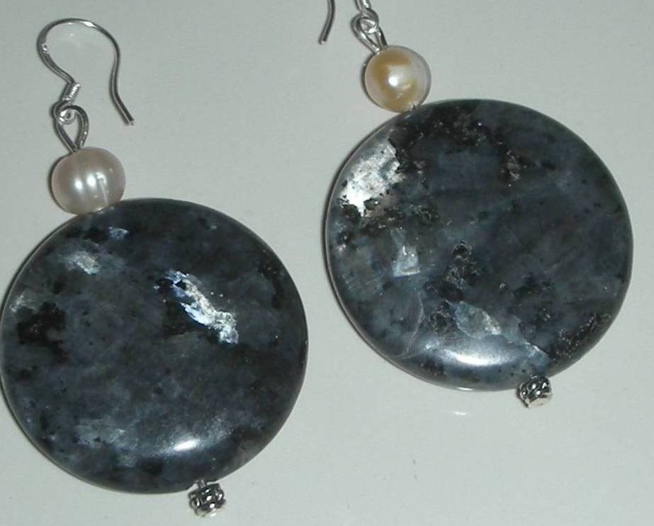 THIS AWESOME STERLING SILVER 16MM Labradorite and Fresh Water Pearl EARRINGS ARE 100% HANDMADE.