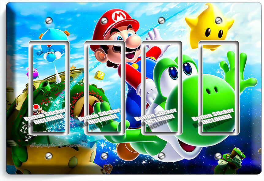 SUPER MARIO FLYING YOSHI GALAXY SPACE LIGHT SWITCH OUTLET PLATES KIDS ROOM DECOR