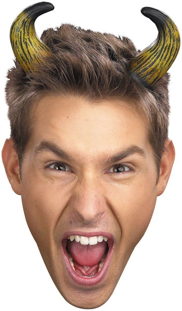 NOGGINZ SHORT BENT TAN HORNS ATTACHED ELASTIC ADULT HALLOWEEN COSTUME ACCESSORY