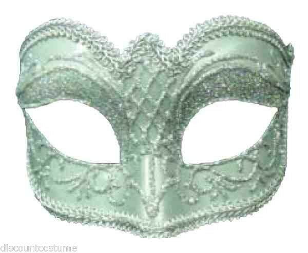 SILVER GLITTER TRIM VENETIAN MARDI GRAS MASQUERADE HALLOWEEN MASK-EYEGLASS ARMS