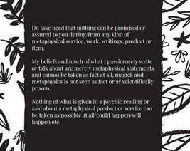 [DISCLAIMER] The writer states and you acknowledge that: Nothing can be promised to you in a psychic reading or spiritual work. All psychic readings and spiritual work must be regarded for entertainment purposes only. Nothing written in this description is promised. No outcome of any nature can be assured.