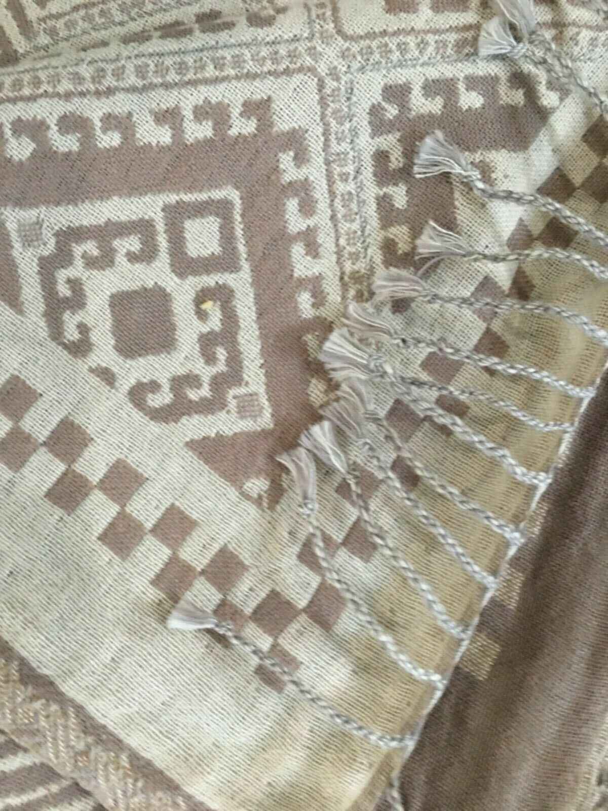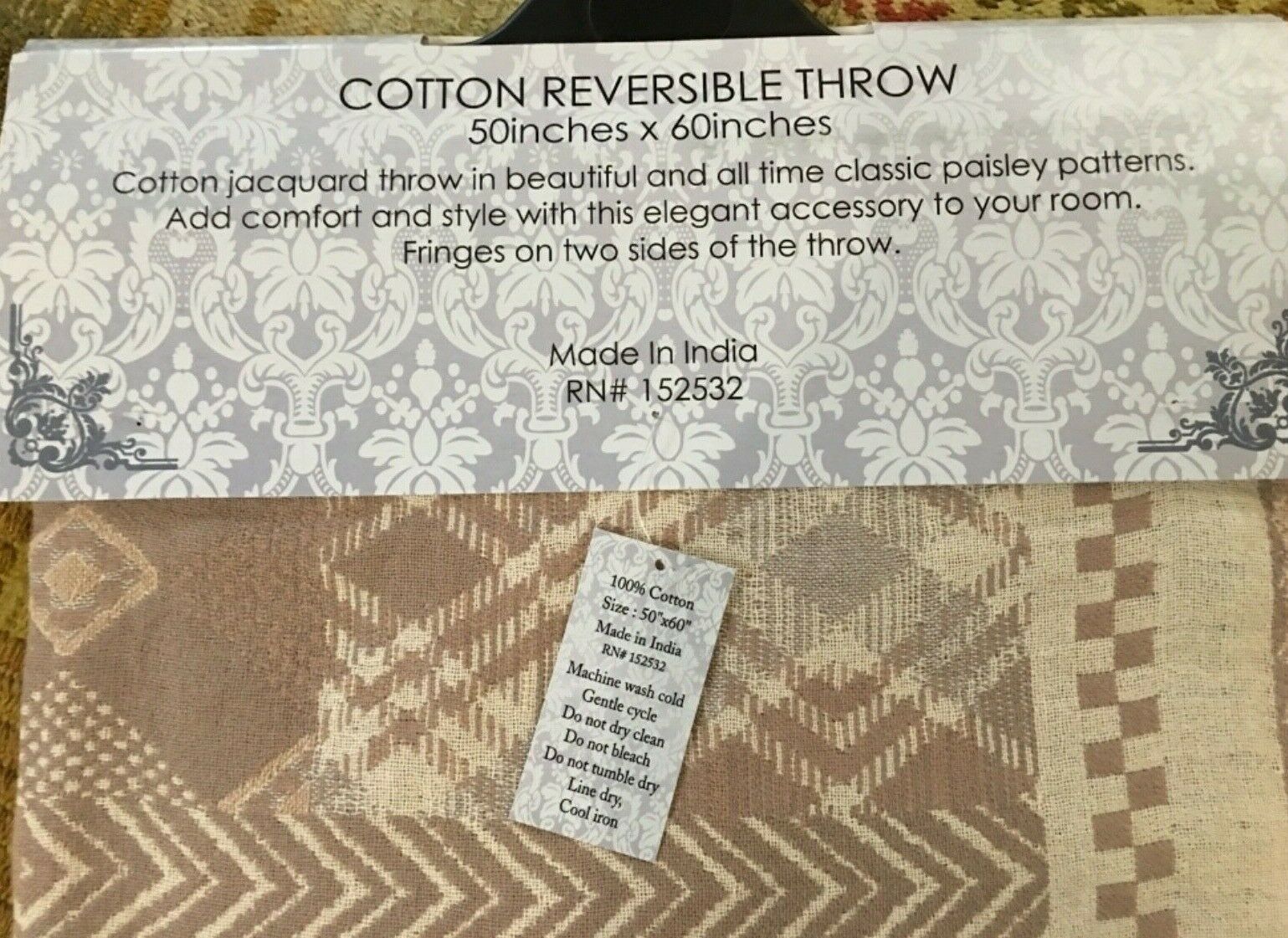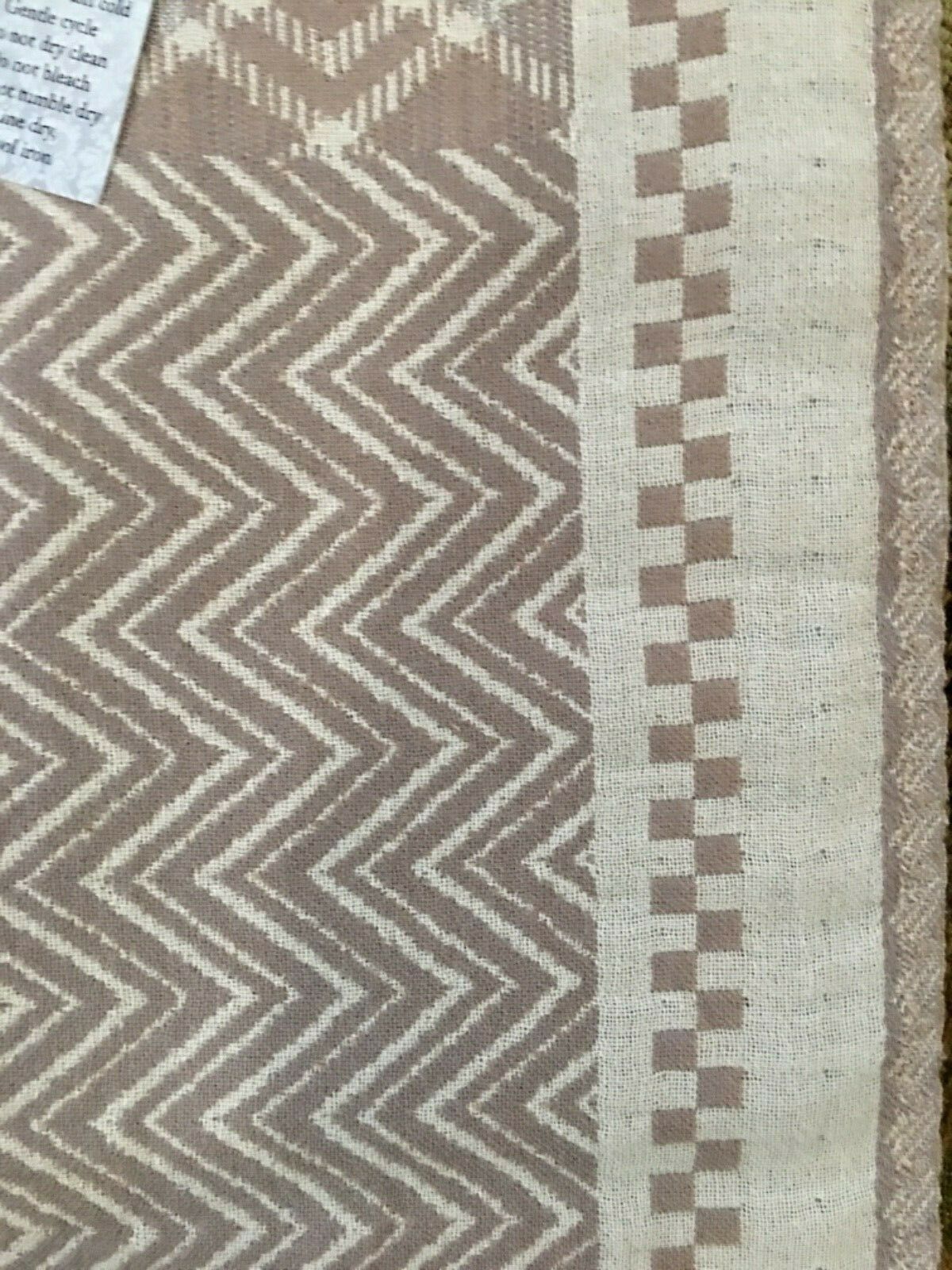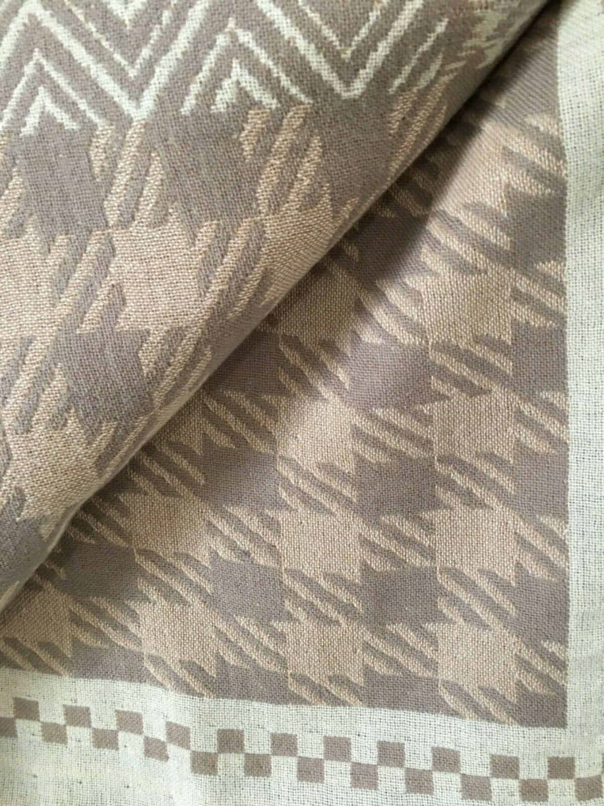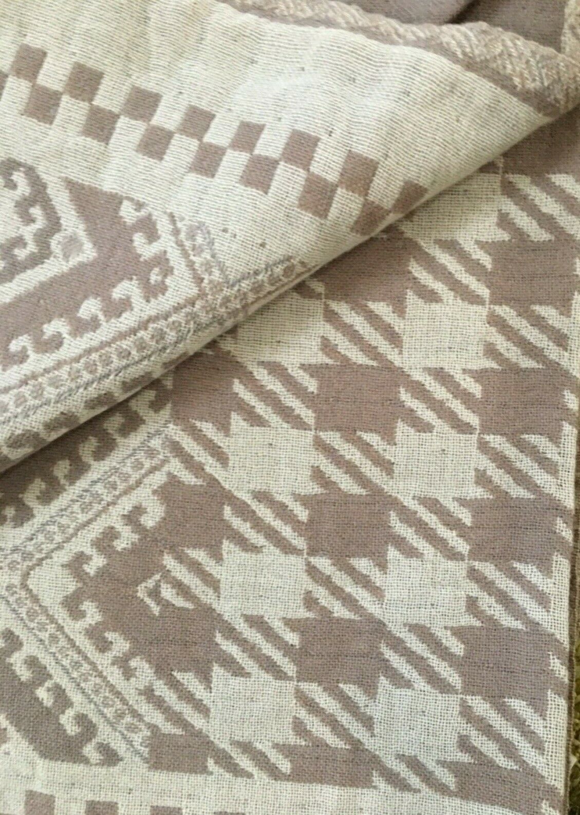 COTTON REVERSIBLE JACQUARD THROW BLANKET 50" x 60" TAUPE/BEIGE FRINGE 2.5" NWT