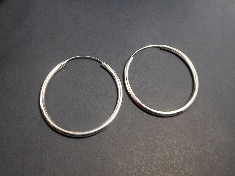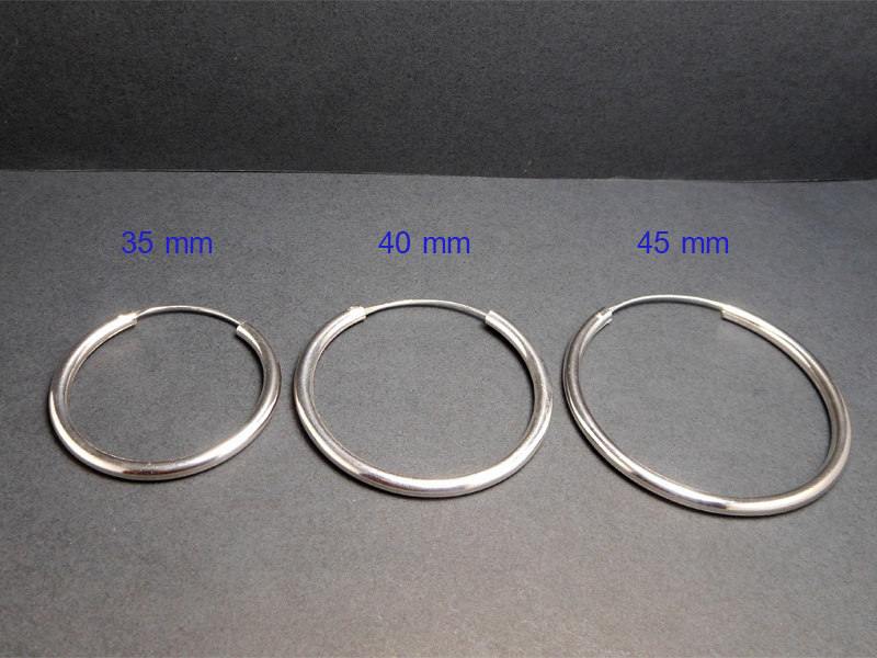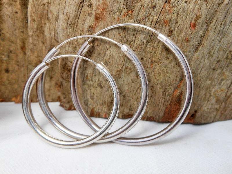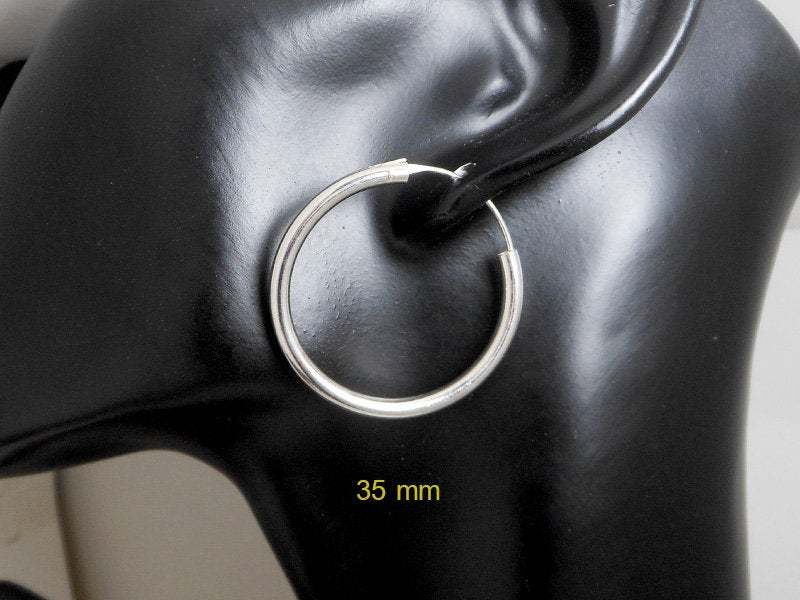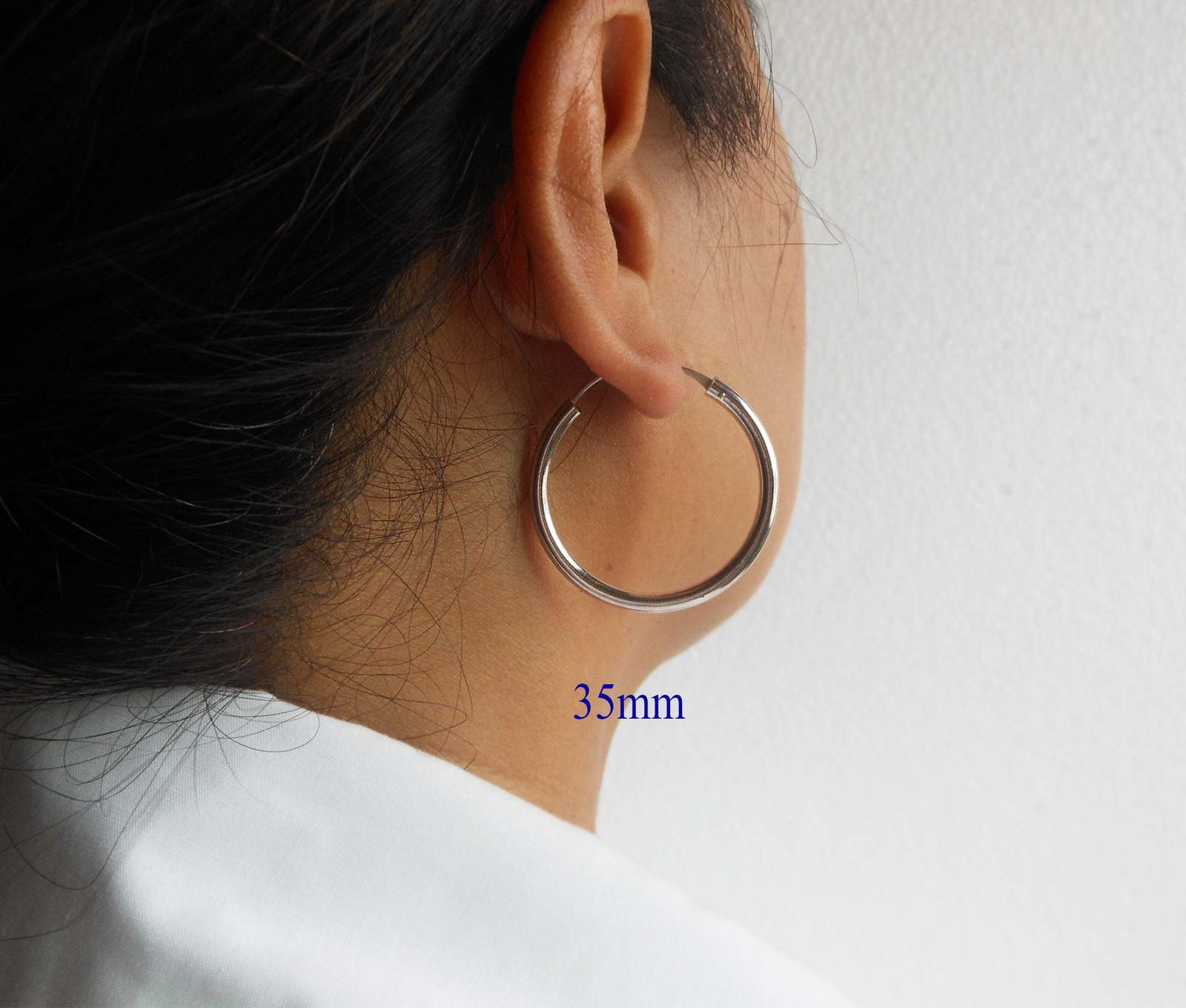 The classic medium sterling silver hoop earrings are 925 sterling silver with handmade womens silver circle earring design in size 35mm, 40mm, 45mm. They are wonderful round close hoop earring to wear daily.
