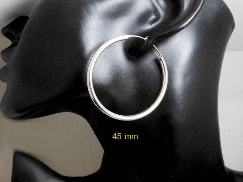 Medium Sterling Silver Hoop Earrings, Silver Circle Earrings 35mm 40mm 45mm