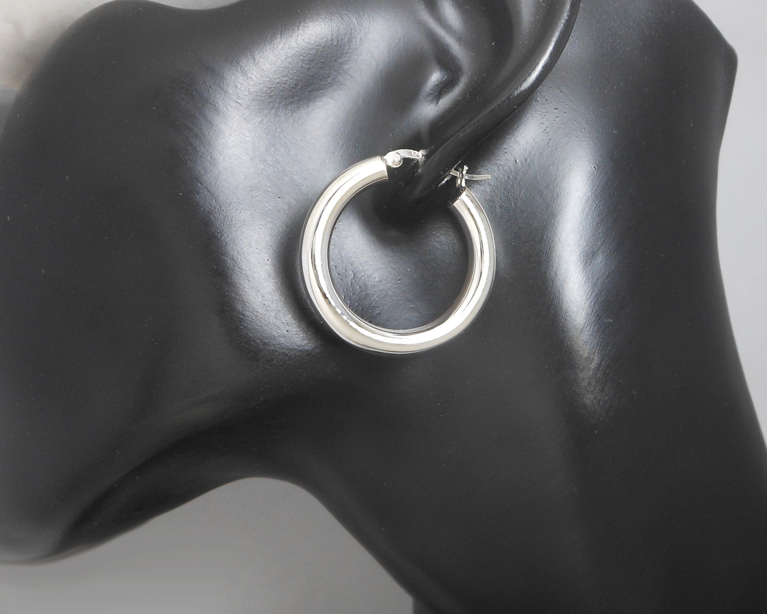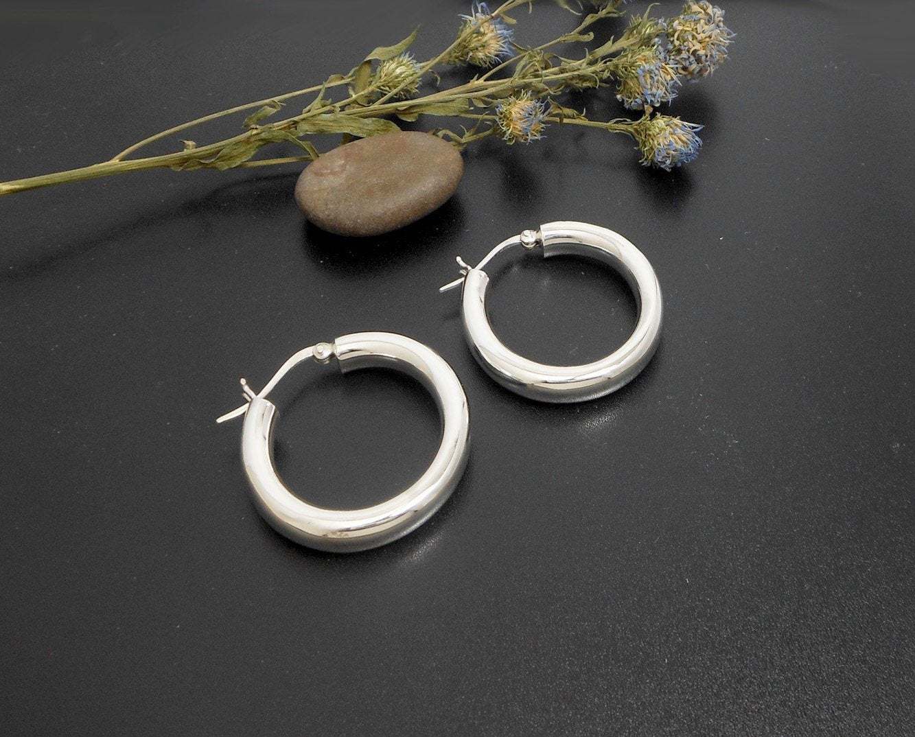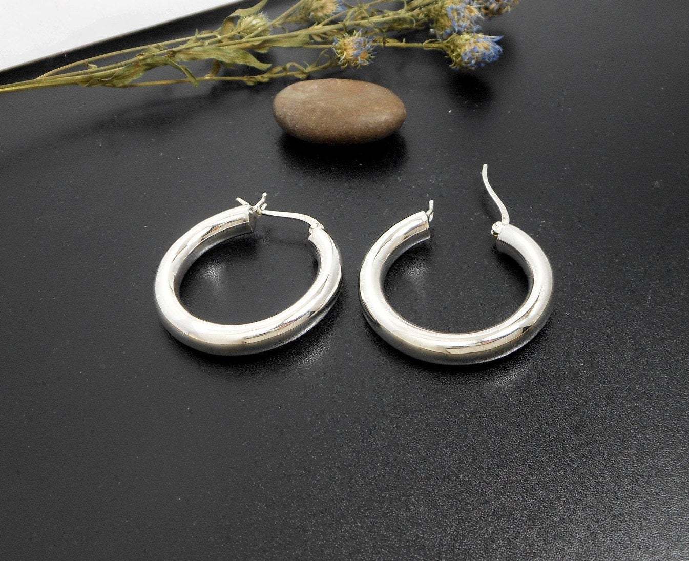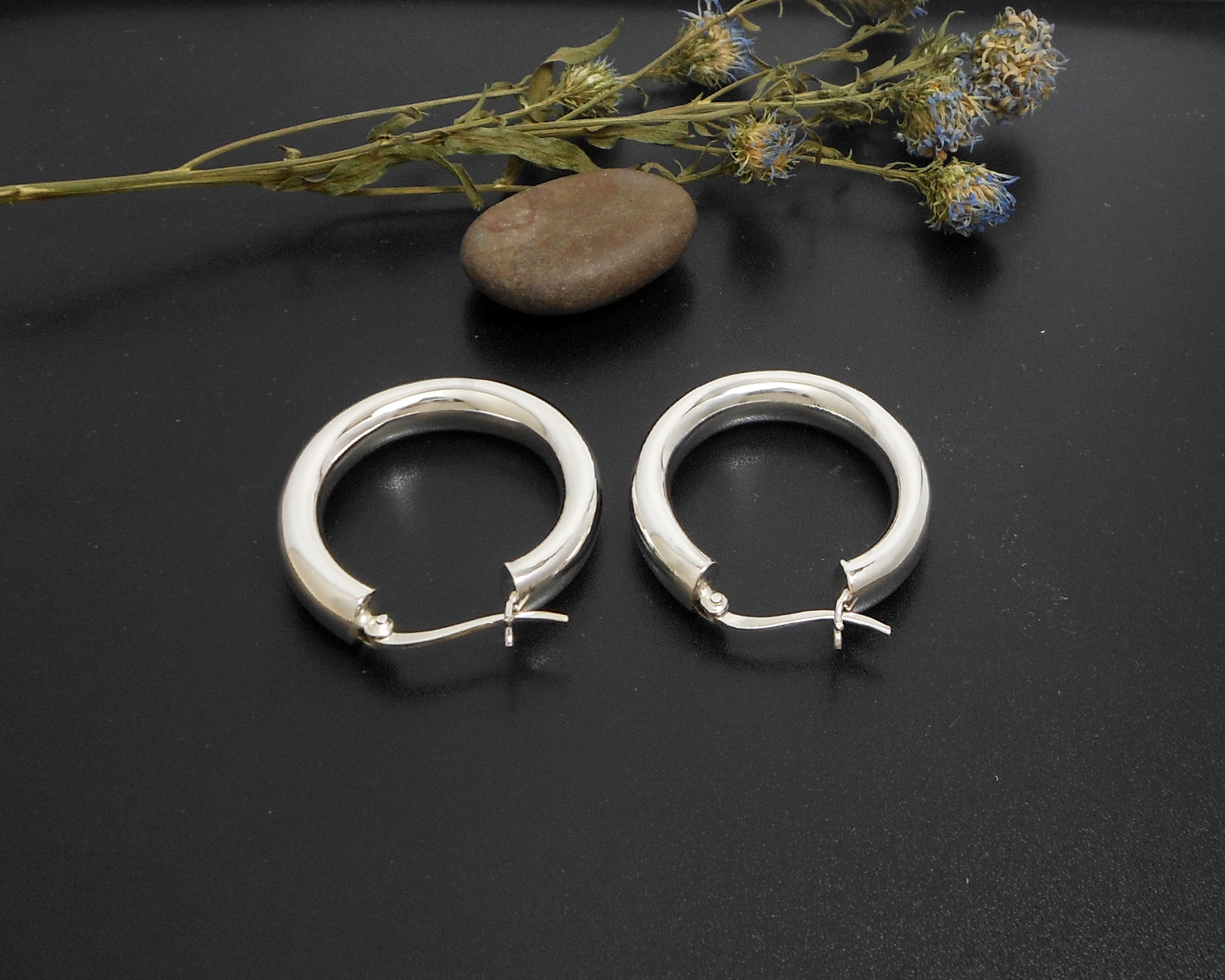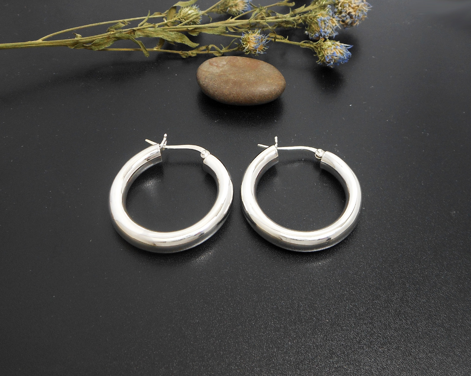 Round Hoop Earrings 30mm 925 Sterling Silver, Handmade Women Earrings