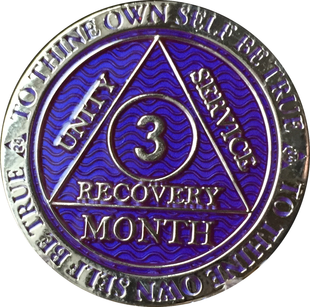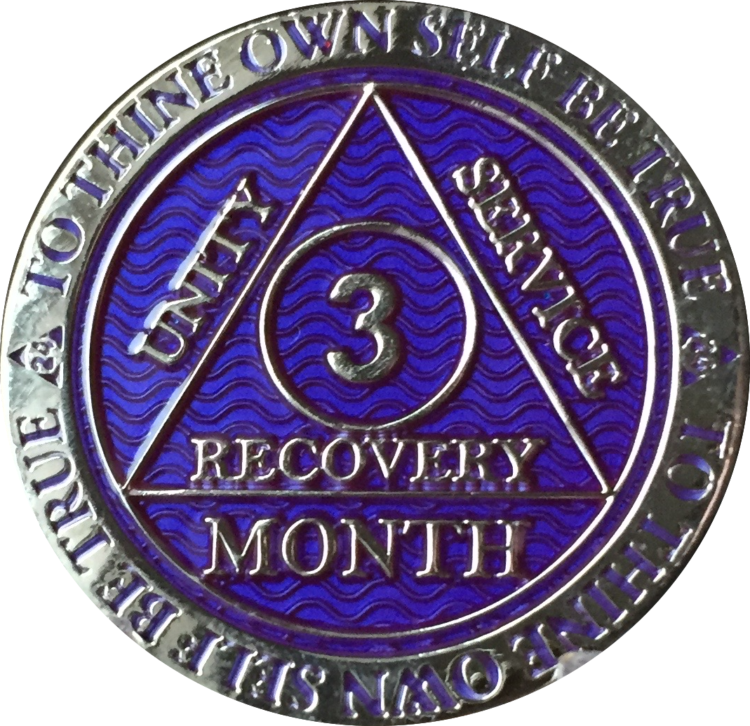 3 Month Alcoholics Anonymous Sobriety Medallion In Reflex Purple Violet Color and Silver Plated