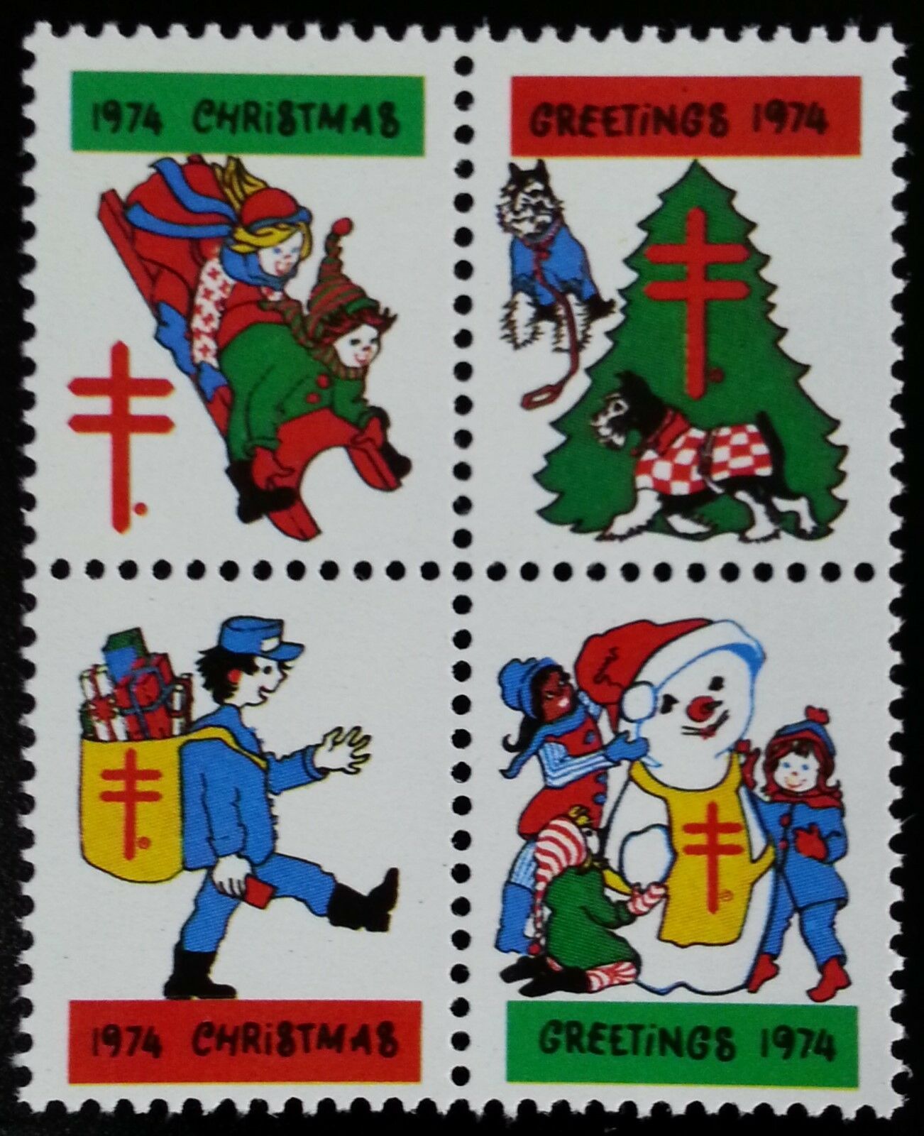 1974 American Lung Association Christmas Seals, Block of 4 Scott WX Mint F/VF NH