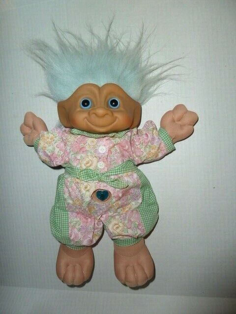 VTG Treasure Trolls Wishstone 12" 1991 ACE Novelty Doll Hair Blue Heart Gemstone