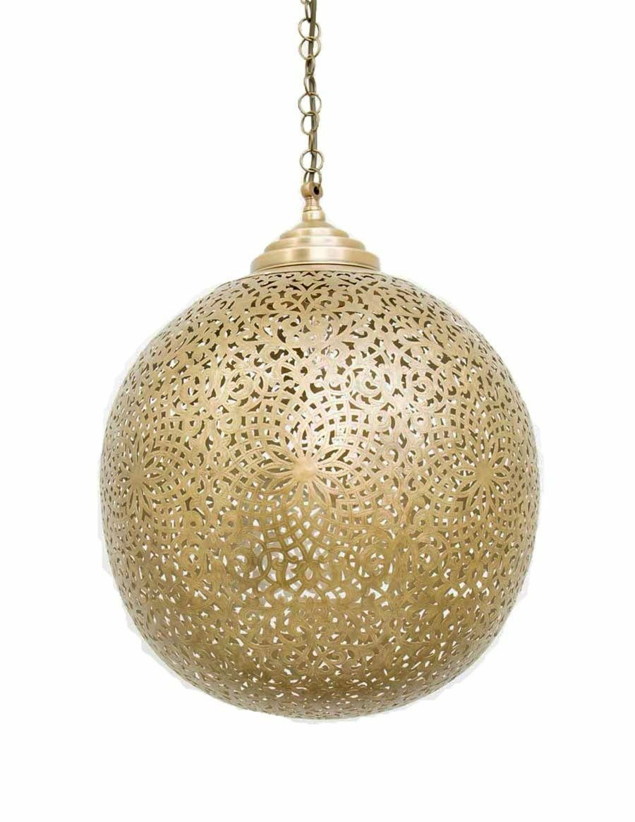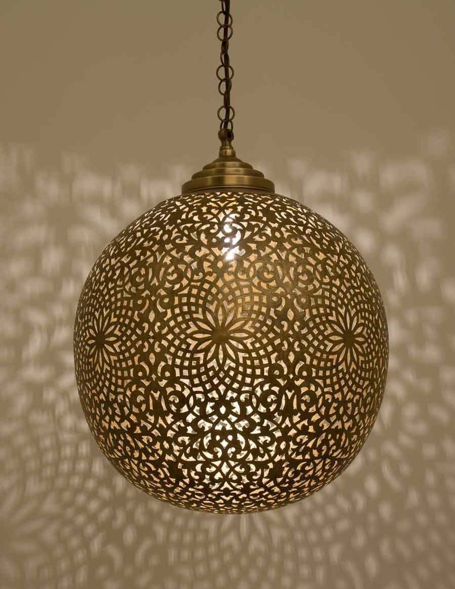 The ROSE OF DESERT is named from its aptly moon-shaped body carved with cascading, intricate floral motifs throughout. Our range of Fleur de Lune pendants are hand built from solid sheets of brass, each are hand stenciled by our team of craftsmen and each in turn has the pattern cut with a fine jewellers saw and patterns craved onto the brass. The sheets are then forged together to create the seamless, circular body. It is then treated with an antiqued finish giving the lit its aged characteristic.