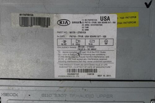 11 12 13 KIA OPTIMA EX AM/FM RADIO CD MP3 SAT PLAYER RADIO RECEIVER 961702T651CA