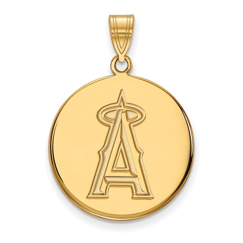 Description - SS w/GP MLB Los Angeles Angels Large Disc Pendant SKU - GP015ANG Metal - Gold-Plated over Sterling Silver Dimensions - W= 21 mm H= 28 mm Grams - 4.82 Manufacturer - LogoArt Note - The height of the pendant is from the bottom to the top of the bale.