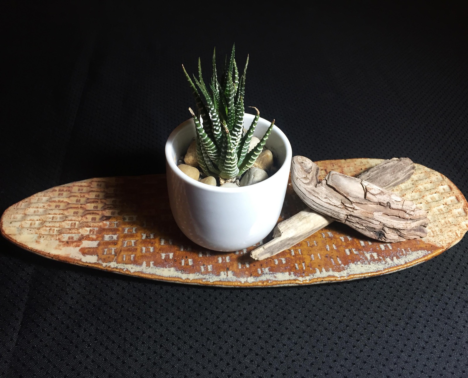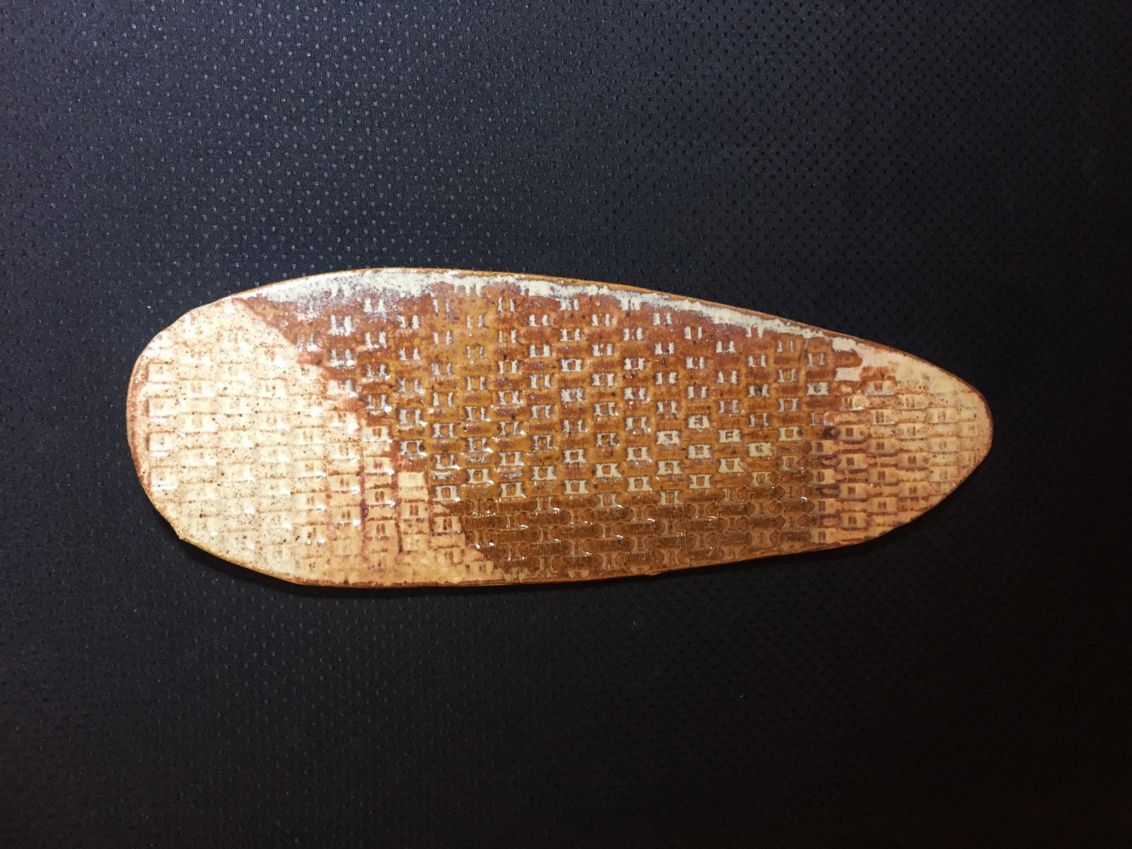 Artisan Pottery: Basket Weave Pattern Long Display Plate / Spoonrest (MB02)