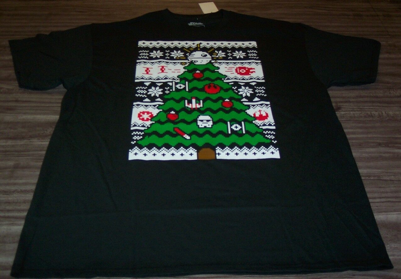 This is a STAR WARS TIE FIGHTER DEATH STAR CHRISTMAS TREE T-shirt. It is a size XL and it is NEW with the tag. It is 24 inches from armpit to armpit and 32 inches in length. Cool T-shirt made to look like a Christmas Sweater. Combine auctions to save on shipping. D2AD