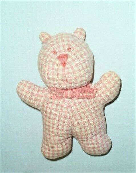 Baby Gap Pink Cream Stuffed Plush Cloth Teddy Bear Rattle Toy 7"