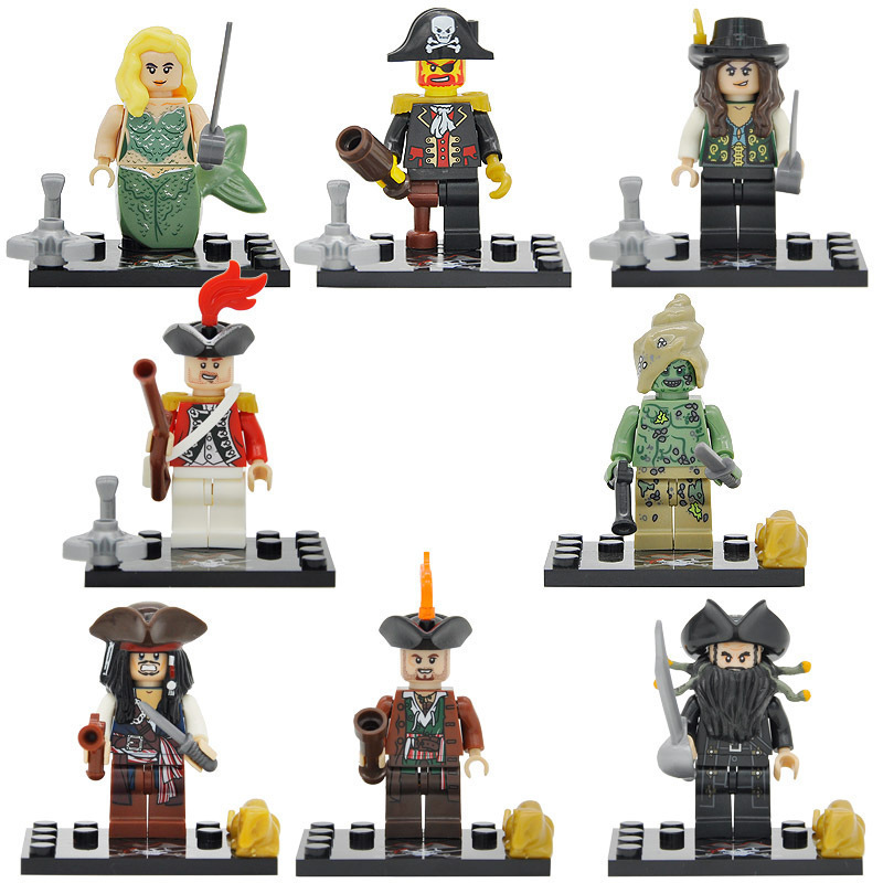 8pcs/set Pirates Of The Caribbean Davy Jones Mermaid Jack Sparrow Minifigures