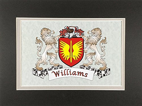 Williams Irish Coat of Arms Print - Frameable 9" x 12" Authentic Irish coat of arms frameable 9" x 12" inch print. Four piece set includes a high-quality print of your Irish family coat of arms on a heavy 65lb cover weight parchment paper, heavy all-black backing board, and TWO separate matboards. Fits any standard 9" x 12" frame. Authentic Irish coat of arms printPrinted from high quality Vector art filesHeavy duty all-black backing boardNo mounting necessaryTwo separate matboards (inside color: clay, outside color: dark olive)9" x 12" frameable sizeShrink wrapped for deliveryChoose from over 1200 available Irish coat of arms.