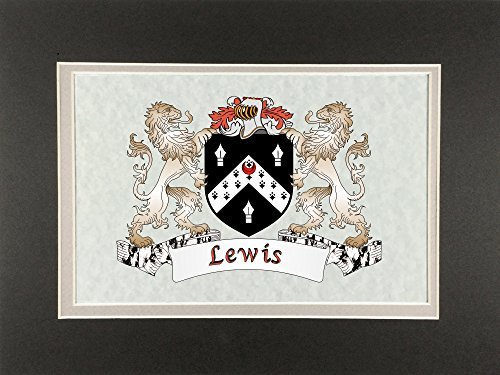 Lewis Irish Coat of Arms Print - Frameable 9" x 12" Authentic Irish coat of arms frameable 9" x 12" inch print. Four piece set includes a high-quality print of your Irish family coat of arms on a heavy 65lb cover weight parchment paper, heavy all-black backing board, and TWO separate matboards. Fits any standard 9" x 12" frame. Authentic Irish coat of arms printPrinted from high quality Vector art filesHeavy duty all-black backing boardNo mounting necessaryTwo separate matboards (inside color: clay, outside color: dark olive)9" x 12" frameable sizeShrink wrapped for deliveryChoose from over 1200 available Irish coat of arms.